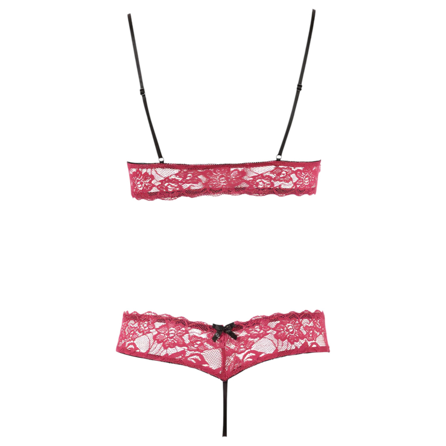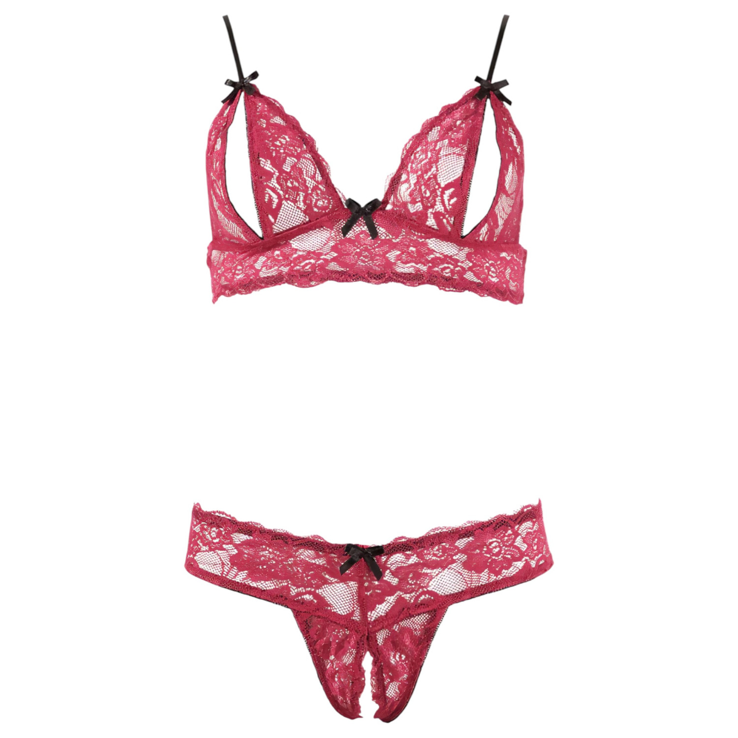 • Design sexy: O sutiã aberto e a tanga totalmente aberta deixam o visual provocante e irresistível.