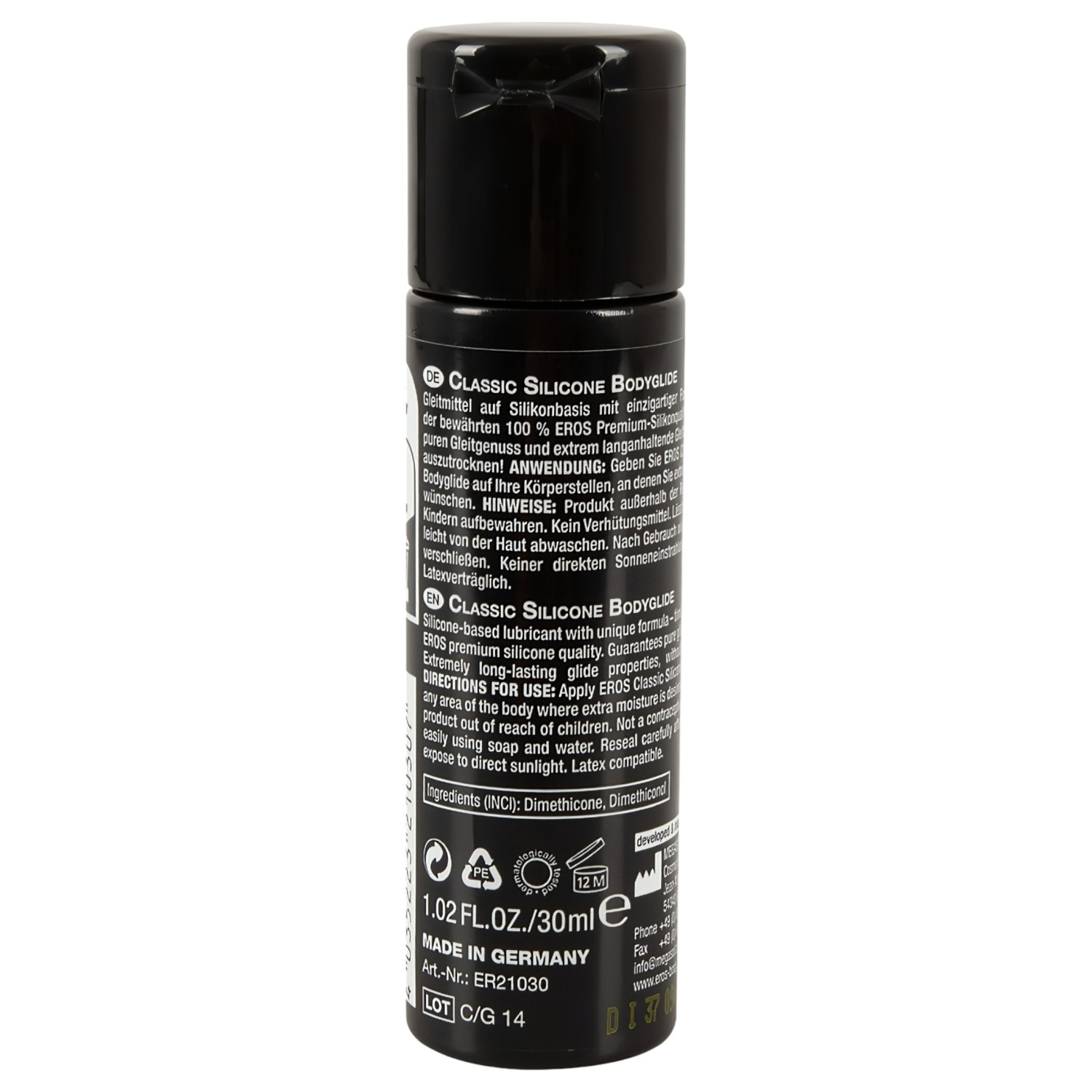 • 1 lubrificante médico à base de silicone EROS 2 em 1 (30 ml)